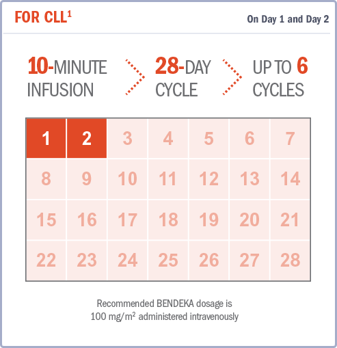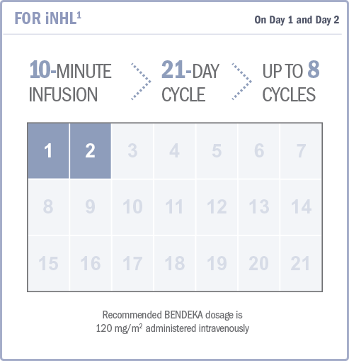 Reference: 1. BENDEKA® (bendamustine hydrochloride) injection [Current Prescribing Information]. Parsippany, NJ: Teva Pharmaceuticals.
