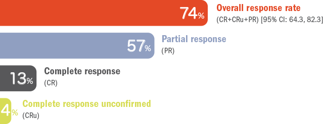 Patients with indolent B-cell NHL that has progressed during or within 6 months of a rituximab-containing regimen achieved robust ORR (74%) and CR (13%)1